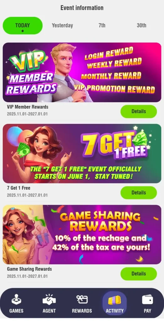Players can earn daily rewards, cashback offers, and special bonuses during events.